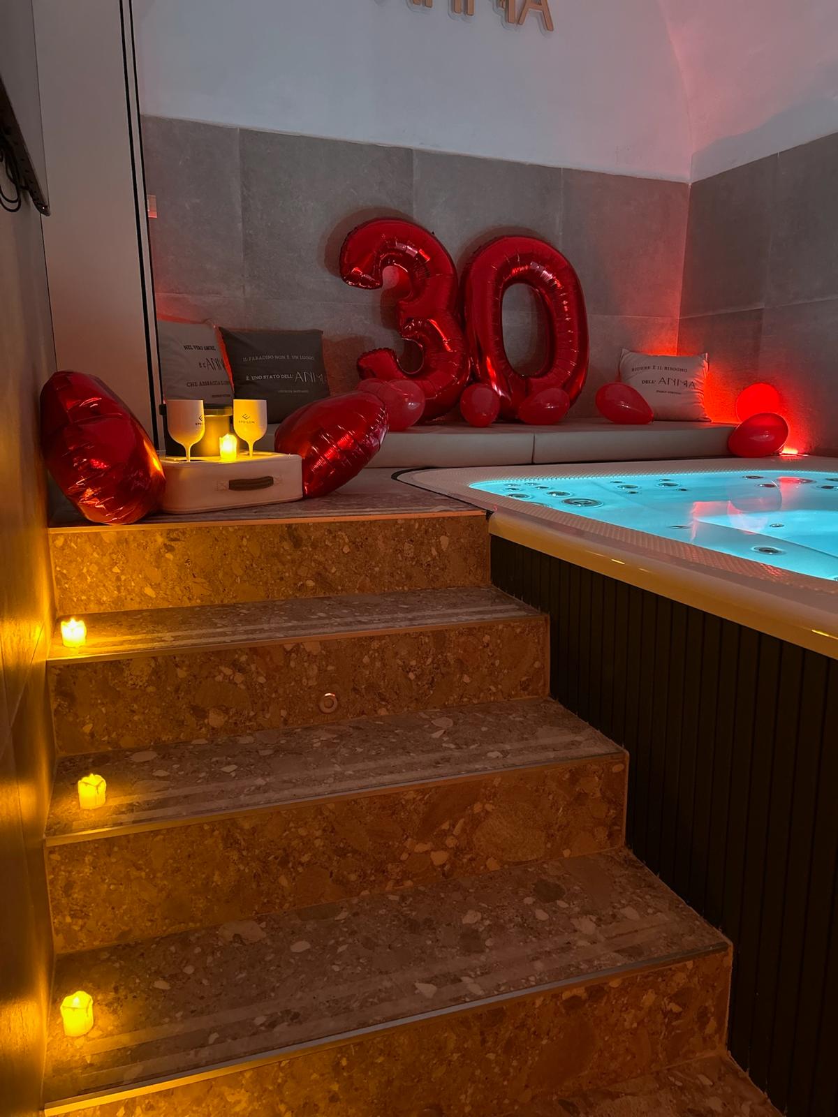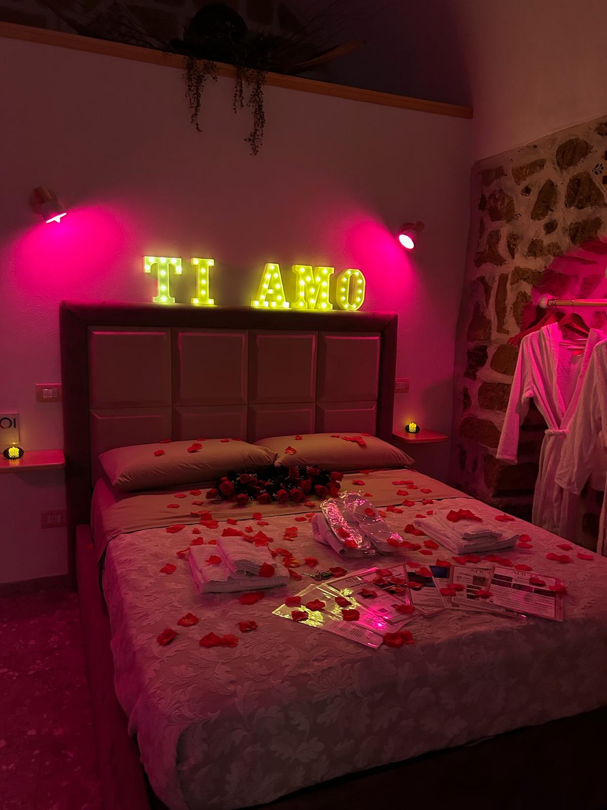 Lascia che ti prepariamo la stanza per rendere perfetta la tua sorpresa. Possiamo inserire nell'offerta: Scritta led Ti Amo , petali di rose , candele , palloncini normali e palloncini GRANDI a forma di numero da poter gonfiare con elio o aria normale.